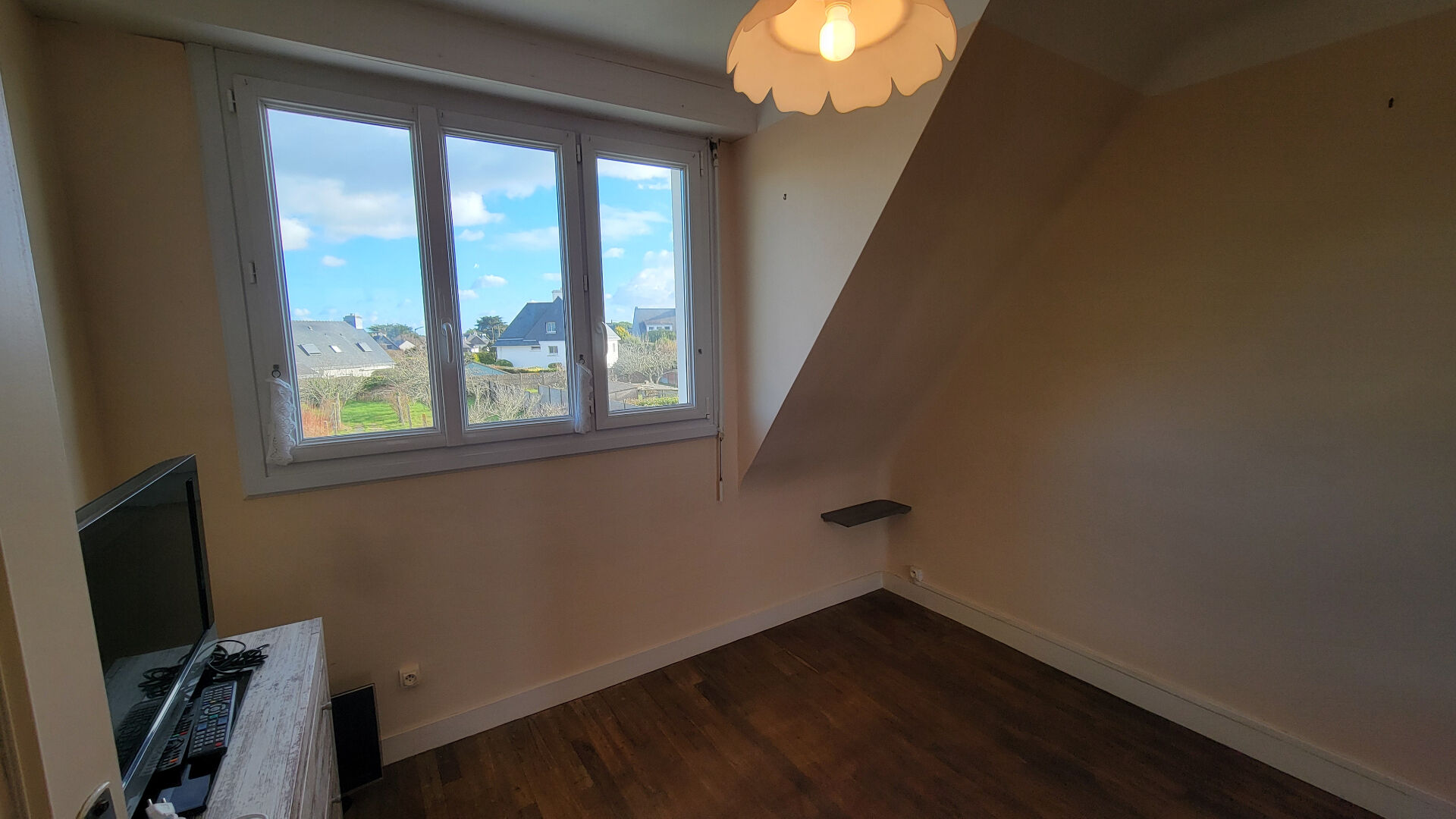 A l'étage, trois chambres lumineuses et peu mansardées et une salle d'eau avec WC. Toutes les chambres offrent des vues dégagées sans vis à vis. Une dalle béton sépare l'étage du rez de chaussée, assurant une bonne isolation thermique et phonique.
