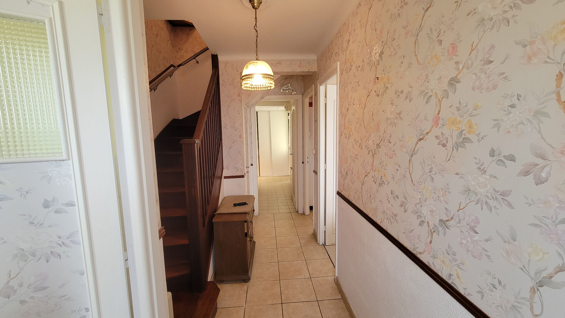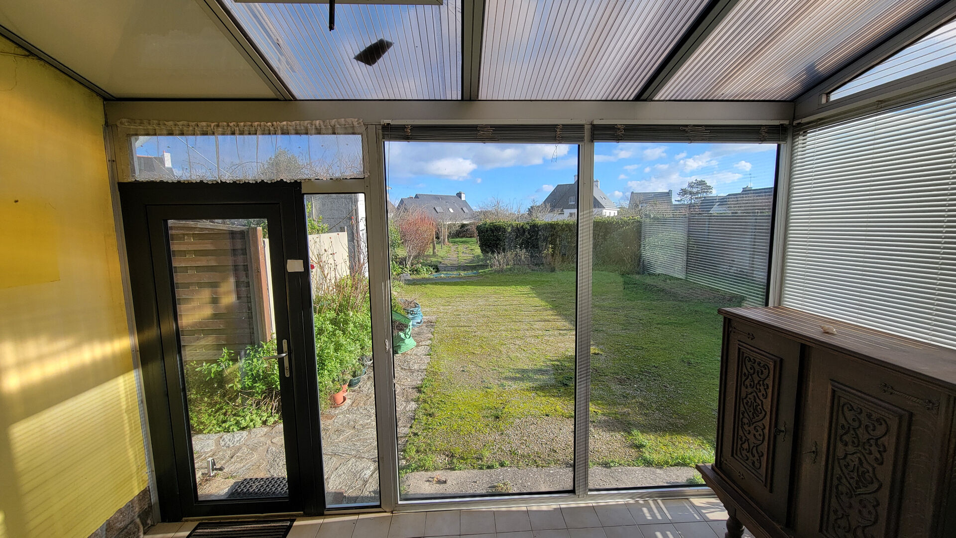 La maison, construite en 1962, comprend une entrée, qui dessert un séjour ouvert sur la cuisine, une salle d'eau et un WC et se prolonge sur un couloir qui permet d'accéder à une véranda qui donne sur le jardin.